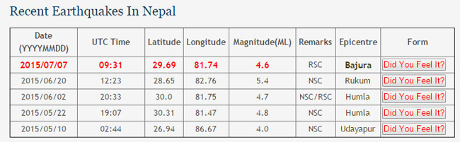 मदना र मैला गाविसको सीमा क्षेत्रलाई केन्द्रबिन्दू बनाएर भूकम्प गएको बताइएको छ ।